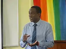 Carolyn Gomes is currently the executive director of the Caribbean Vulnerable Communities Coalition (CVC), which works with Caribbean populations who are particularly vulnerable to HIV/AIDS and have social and financial barriers barring them from treatment and aid.[63] Prior to assuming this role in January 2014, Gomes served as executive director of Jamaicans for Justice (JFJ), which she founded in Kingston in 1999 in order to fill the gap needed in Jamaica for a citizens' rights action group that works towards eradicating corruption in the judicial system and the public sphere as well as imbalances in the socio-economic system.[63] She resigned from JFJ in 2013 after nationwide pushback on the sexual education leaflets the organisation produced for adolescents, due to their mentioning of anal sex.[64] She speaks out on LGBT issues as they relate to her organisation and in part due to the fact that her sister is a homosexual woman.[65]