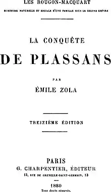 La Conquête de Plassans (1874) is the fourth novel in Émile Zola's twenty-volume series Les Rougon-Macquart. In many ways a sequel to the first novel in the cycle, La Fortune des Rougon (1871), this novel is again centred on the fictional Provençal town of Plassans and its plot revolves around a sinister cleric's attempt at political intrigue with disastrous consequences for some of the townsfolk.