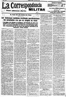 La Correspondencia Militar (The Military Correspondence), also known as La Correspondencia, was a daily newspaper published in Madrid from 1877 to 1932.[2] During its existence it maintained a hawkish editorial line favorable to the Spanish Army.