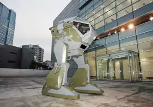 The Land Walker is the first 3.4-meter-tall (11 ft) bipedal robot. Despite its name, it does not actually walk— instead shuffling on wheels hidden under its "feet" at approximately 1.5 km/h (1 mph). It was invented by Masaaki Nagumo and created by researchers who hope to someday create similar robots to be used in the military and law enforcement.[1]