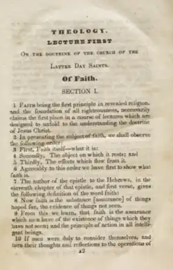 First page of the Lectures on Faith as found in the 1835 Doctrine and Covenants