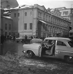 He was a supporting actor in Vasyok Trubachyov i yego tovarishchi (1955) and the romance Otryad Trubachyova srazhayetsya (1957).[8] He played Fedul VI in Fire, Water, and Brass Pipes (1968).[9][10] He played the part of Dobchinsky in the comedy Incognito from St. Petersburg (1977).[11] In 1979 he acted in Moscow Does Not Believe in Tears, and A Few Days from the Life of I. I. Oblomov. In Moscow Does Not Believe in Tears he appears in cameo as himself, as part of the setting for the character Rudolf (Yuri Vasilyev) who is a television cameraman and first lover of the protagonist Ekaterina (Vera Alentova). Kharitonov was at that time ubiquitous on Soviet television, and therefore represented the contemporary celebrity media zeitgeist. This cameo part is not unimportant, as director Vladimir Menshov said: "The uniqueness of the movie Moscow does not believe in tears lies in the fact that there are no bit parts."[3][12][13]