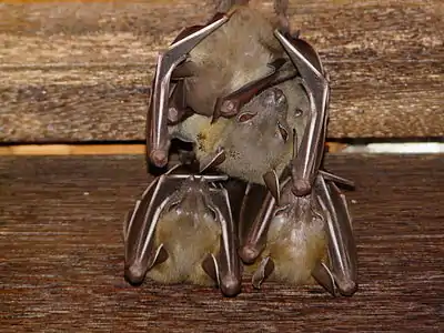 - ↑ Simmons, N.B. (2005). "Order Chiroptera". In Wilson, D.E.; Reeder, D.M (eds.). Mammal Species of the World: A Taxonomic and Geographic Reference (3rd ed.). Johns Hopkins University Press. p. 316. ISBN 978-0-8018-8221-0. OCLC 62265494.