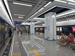 Line 3 of the Xiamen Metro is a metro line in Xiamen. The line running from Xiamen Railway Station to Caicuo, is 26.5 kilometres (16.5 mi) long with 21 stations in operation. The line features a 4 kilometres (2.5 mi) undersea tunnel. Construction began in August 2016 and the section from Xiamen Railway Station to Caicuo (Phase 1 & Phase 2 West section) was opened on June 25, 2021.[1] The remaining section of Phase 2, from Caicuo to Xiang'an Airport is currently under construction.[2] A Southern extension to Shapowei is also under construction.