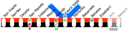- Zazpikaleak/Casco Viejo - link with EuskoTren to Deusto and Lezama.