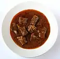 Gedempte fleisch Ashkenazic pot roast, traditionally made with beef, various vegetables, tomato paste, and spices.