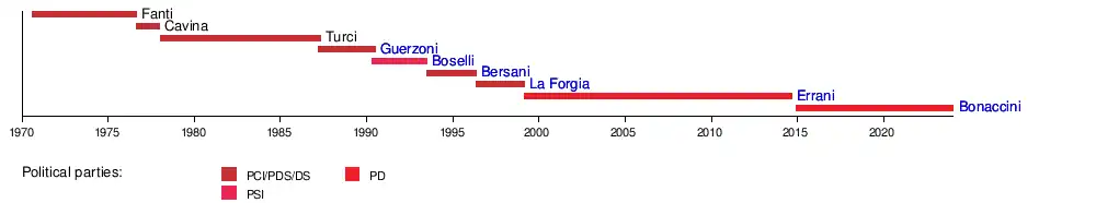 | 5 | Luciano Guerzoni | PCI | 3 years, 57 days | 1 |