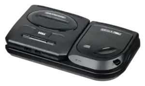 The Sega CD, originally released as the Mega-CD (メガCD, Mega-Shī Dī) in most regions outside of North America and Brazil, is an add-on device for the Sega Genesis video game console, designed and produced by Sega. It was released in Japan in 1991, North America in 1992 and in PAL regions in 1993. The device adds a CD-ROM drive to the console, allowing the user to play CD-based games and providing additional hardware functionality. It can also play audio CDs and CD+G discs. While the add-on did contain a faster central processing unit than the Genesis, as well as some enhanced graphics capabilities, the main focus of the device was to expand the size of games.[1] The Sega CD sold 2.24 million units worldwide[2] and was officially discontinued in 1996.[3]