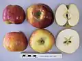 Astillisch[5] Germany Raised 1929 Parentage Red Astrachan x Signe Tillisch. Width 63–70 mm, height 56 mm. Flesh yellowish-white, juicy, soft, subacid. Eating Pick August. Use August.