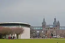 Museumplein is located in the Museumkwartier neighbourhood, beside three major museums – the Rijksmuseum, Van Gogh Museum, and Stedelijk Museum – and the concert hall Concertgebouw.[3]