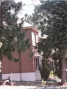 The Hastings family lived the house for a brief period of time in 1863, but do not appear to have been the owners, during which the rear section of the house was burnt down.[12] The house was not rebuilt at this time. During ownership by the Smith family, the coachman's cottage is said to have been built in front of the entrance gates to Llanarth (BDHS nd). Mr Tyne lived in the cottage with his family.[9] In c. 1864 there were several small buildings adjacent to Llanarth but the one most prominent was a cottage in front at the entrance gates, known as 'the coachman's cottage'. Mr Tyne and his family lived in the coachman's cottage for quite some time.[13][14][1]