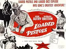 Loaded Pistols is a 1948 American Western film directed by John English and starring Gene Autry, Barbara Britton, and Chill Wills. Written by Dwight Cummins and Dorothy Yost, the film is about a cowboy who protects a young man wrongly accused of murder, while trying to find the real badguys.[1]