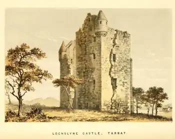 "Lochslyne Castle" (Loch Slin or Lochslin) as appears in William Fraser's The Earls of Cromartie; Their Kindred, Country, and Correspondence, Volume 1 (1876)