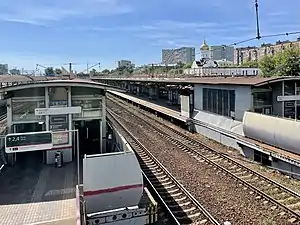 Losinoostrovskaya (Russian: Лосиноостровская) is a railway station located in Losinoostrovsky District of Moscow, Russia. The station serves suburban traffic of Yaroslavsky suburban railway line by Moscow Railway. The southbound trains terminate at Moscow Yaroslavskaya railway station in Moscow. The northbound trains terminate at the stations of Bolshevo, Fryazino Passazhirskaya, Monino, Shchyolkovo, Fryazevo, Pushkino, Sofrino, Krasnoarmeysk, Sergiyev Posad, Alexandrov I, and Balakirevo. All suburban trains stop at Losinoostrovskaya.[1] The station is operated by the Moscow Railway.
