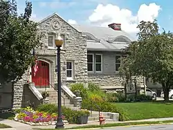 Louisiana Public Library is a historic Carnegie library building located at Louisiana, Pike County, Missouri. It was designed by the architectural firm Mauran, Russell & Garden and built in 1905. It is a one-story, Late Gothic Revival style rock-faced, cut limestone building on a partially exposed basement. It measures approximately 50 feet by 40 feet and features a front arched doorway with batten doors, eyebrow windows, and stepped parapet. It was constructed with a $10,000 grant from the Carnegie Foundation.[2]: 5, 9