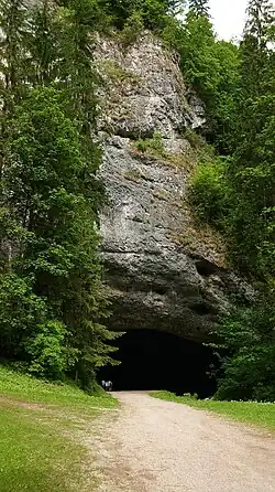 The Lurgrotte karst cave is the largest cave in the Eastern Alps of Styria, Austria. It is located about 16 km (9.9 mi) north of Graz and crosses the Tannenben karst region. The cave has two accessible entrances, one at the village of Semriach and the other at the village of Peggau.[2] At the Semriach entrance, the Lur River sinks into the cave. At the Peggau entrance, the Schmelz River emerges from within the cave, flowing to the west and eventually joining the Mur River.[2][3]