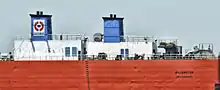 She was built by the Fincantieri Marghera Shipyard in Venice, Italy with yard number 305 as a barge carrier (LASH carrier) in April 1984. The 157.75 m (517 ft 7 in) (LOA) long vessel has a beam of 29.00 m (95 ft 2 in), a depth of 5.31 m (17 ft 5 in) and a draft of 4.43 m (14 ft 6 in) registered.[1] Two diesel engines of Type GMT BL230.12V (230x310) and two of Type GMT BL230.8V (230x310) manufactured by the Grandi Motori Trieste in Trieste, Italy give a total power of 8,680 kW (11,640 hp) propelling the vessel at 12.8 knots (23.7 km/h; 14.7 mph).[2] By 8,727 DWT and 7982 NT, she has a cargo capacity of 17,395 GT.[2]