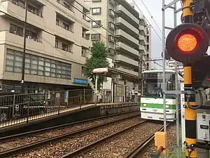 Machiya-nichome Station (町屋二丁目停留場, Machiya-nichōme-teiryūjō) is a tram station operated by Tokyo Metropolitan Bureau of Transportation's Tokyo Sakura Tram located in Arakawa, Tokyo, Japan. It is 2.2 kilometres from the terminus of the Tokyo Sakura Tram at Minowabashi Station.