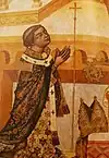 The Enthroned Madonna of Kłodzko (de: Glatzer Madonna) is a Bohemian panel painting dating from 1343 to 1344[1] that was originally the central part of a larger winged altarpiece. The altarpiece's donor was Archbishop Arnošt of Pardubice, who is portrayed in the bottom left-hand corner.