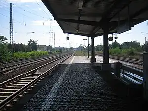 Mainz-Mombach station is one of two railway stations in the suburb of Mombach of the German town of Mainz. Due to its central location it is the primary station of the suburb besides the halt “Waggonfabrik”. The station is a part of the West Rhine Railway and borders the Wye: Gleisdreieck Mainz, leading to the Kaiserbrücke (Mainz) and the main station Mainz.