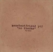 Mansbestfriend Pt. 2: No Thanks is a studio album by American hip hop artist Sole. Originally self-released in 2003, the album was repackaged and remastered with additional tracks and released by Morr Music in 2004 under the title The New Human Is Illegal, with Sole using "Mansbestfriend" as an alternate moniker.[1][2]