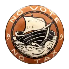 A badge of the Women's Tax Resistance League, with the slogan "No vote, no tax", as designed by Margaret Sargant Florence