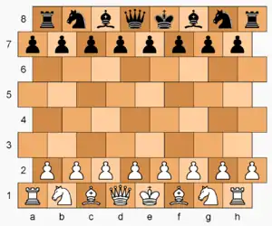 Masonic chess is a chess variant invented by George R. Dekle Sr. in 1983.[1][2] The game is played on a modified chessboard whereby even-numbered ranks are indented to the rightresembling masonry brickwork. The moves of the pieces are adapted to the new geometry; in other respects the game is the same as chess.