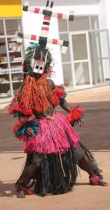 A masquerade ceremony (or masked rite, festival, procession or dance) is a cultural or religious event involving the wearing of masks. The practice has been seen throughout history from the prehistoric era to present day. They have a variety of themes. Their meanings can range from anything including life, death, and fertility. In the Dogon religion, the traditional beliefs of the Dogon people of Mali, there are several mask dances, including the Sigi festival.[1][2] The Sigi entered the Guinness Book of Records as the "Longest religious ceremony".[3]