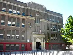 The building was designed by Irwin T. Catharine and built between 1923 and 1924. It is a three-story, nine-bay by five-bay, brick building that sits on a raised basement. Designed in the Colonial Revival style, it features large stone arch surrounds on the first level, a projecting entrance pavilion, a double stone cornice, and brick parapet that is topped by stone coping.[2] The building was added to the National Register of Historic Places in 1988.[1]