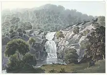 - Afon Gamlan which joins at Ganllwyd after following a tumultuous valley through ancient oak woods before descending towards the main river down Rhaeadr Ddu (Black waterfalls). This valley has one of the more important moss and liverwort communities in the southern UK.