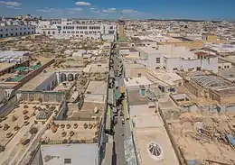 Founded in 698 around the original core of the Zitouna Mosque, the Medina of Tunis developed throughout the Middle Ages.[3] The main axis was between the mosque and the centre of government to the west in the kasbah. To the east this same main road extended to the Bab el Bhar. Expansions to the north and south divided the main Medina into two suburbs north (Bab Souika) and south (Bab El Jazira).[4]