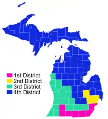 | Location | Detroit (1st District) Troy (2nd District) Grand Rapids (3rd District) Lansing (4th District) |