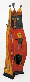 Bethe-Selassié's works are distinguished by preserving irregular and organic shapes, in addition to having the mixture of multiple colors where details of Ethiopian culture can be appreciated. His work becomes related to the tradition of Jean Dubuffet and also to the characteristics of art brut.[11] Much of his works are associated with these terms due to the simple but highly expressive forms that make them up. The representation of these range from the characterization of royalty, animals and even warriors.[12]