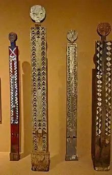 Each of the Mijikenda groups has a sacred forest, a kaya, which is a place of prayer. Eleven of the approximately 30 kaya forests have been inscribed together as a UNESCO World Heritage Site, the Sacred Mijikenda Kaya Forests.[4] Mijikenda people are also known for creating wooden kigango funerary statues which have been displayed in museums around the world and sold in the international art market. These artifacts were at one time legally sold by reputable art galleries and curio shops during the early 1970s to the 1990s; however, other kigango statues were found to have been stolen from cultural sites and illegally sold.