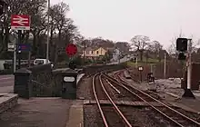 Minffordd railway station (translation Roadside, literally Lip of the Road) is a pair of adjacent stations on separate lines in Gwynedd, Wales. The mainline station opened as Minfford Junction on 1 August 1872 at the point where the then recently built Aberystwith and Welsh Coast Railway line from Dovey Junction to Pwllheli (latterly to become part of the Cambrian Railways) passes under the earlier narrow gauge Festiniog Railway. The latter was built in 1836 to carry dressed slate from Blaenau Ffestiniog to Porthmadog for export by sea, and had carried passengers from 1865 onwards. The station was renamed Minffordd in 1890.