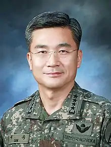 The Ministry of National Defense was established on 15 August 1948[2] and located at Yongsan-dong, Yongsan District, Seoul.[3] It was established following the foundation of ROK in 1948, superseding the Department of Internal Security (DIS, 국내경비부) in charge of Southern Korean armed forces under the United States Army Military Government (USAMGIK) during the Allied occupation era.[4] During Coup d'état of December Twelfth, ministry was occupied by 1st Airborne Special Forces Brigade commanded by Park Hee-do.[5] In 2018, the Ministry has agreed to respect the results from its Special Investigation Committee on Gwangju Uprising in which MD Helicopters MD 500 and UH-1H were used to fire on protesting citizens.[6]