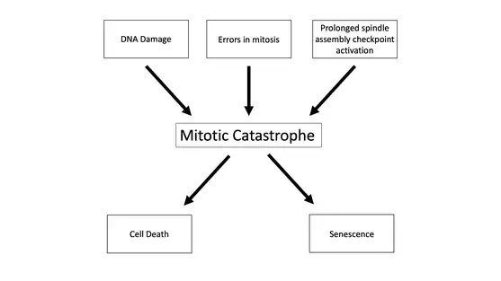 Mitotic catastrophe has been defined as either a cellular mechanism to prevent potentially cancerous cells from proliferating or as a mode of cellular death that occurs following improper cell cycle progression or entrance.[1][2] Mitotic catastrophe can be induced by prolonged activation of the spindle assembly checkpoint, errors in mitosis, or DNA damage and operates to prevent genomic instability.[3] It is a mechanism that is being researched as a potential therapeutic target in cancers, and numerous approved therapeutics induce mitotic catastrophe.[4]