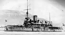 Upon being commissioned into the Austro-Hungarian Navy, the three ships of the Monarch class were used for a variety of purposes. All three ships of the Monarch class partook in a cruise around the Adriatic and Aegean in 1899, to display the Austro-Hungarian flag in foreign waters.[1] The Monarch class formed the I Battleship Division of the Austro-Hungarian Navy. The battleship Wien participated in the Diamond Jubilee of the crowning of Queen Victoria in 1897, as well as the international blockade off Crete during the Greco-Turkish War of 1897.[1]
