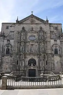 The facade of the church, oriented to the west and open to the square of San Martín, presents a cover with structure of great altarpiece of stone divided in three bodies and three streets separated by fluted columns and is dedicated to the exaltation of the Virgin Mary and of The Benedictine order.