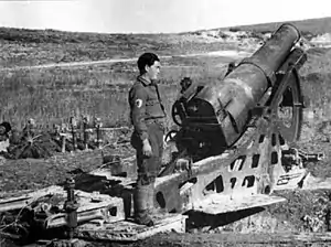 ![]() A 260/9 mortar in firing position. | |