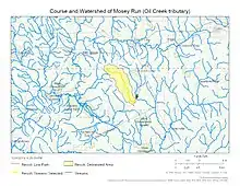 Course and Watershed of Mosey Run (Oil Creek tributary)