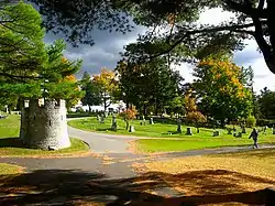 This was the preferred resting ground for Bangor's 19th- and early-20th-century elite. The cemetery includes the gravesites of Hannibal Hamlin, a U.S. Vice President who had also held office as Congressman, US Senator and Governor of Maine, a U.S. Senator,[note 1] ten U.S. Congressmen,[note 2] two U.S. Ambassadors, four Governors of Maine,[note 3] eight Civil War Generals,[note 4] and numerous "lumber barons" and other local businessmen and politicians. Actors Richard Golden and Ralph Sipperly are also buried there.[3]