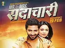 Mr. and Mrs. Sadachari is a 2016 Indian Marathi language action romance film, directed by Ashish Wagh and produced by Utpal Acharya and Ashish Wagh under the banner Indian Films Studio.[1] The film released on 19 February 2016 across Maharashtra.[2] It stars Vaibbhav Tatwawdi and Prarthana Behere in lead roles.[3] The hit pair is brought together again after Coffee Ani Barach Kahi.[4] The movie is an official remake of the Kannada Blockbuster film Mr. and Mrs. Ramachari.[5]