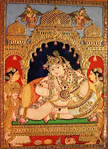 Navaneeta Krishna, 19th century Thanjavur painting.