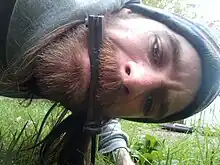 Mumblety-peg (also known as mumbley-peg, mumbly-peg,[1] mumblepeg, mumble-the-peg, mumbledepeg or mumble-de-peg) is an old outdoor game played using pocketknives.[2] The term "mumblety-peg" came from the practice of putting a peg of about 2 to 3 in (5 to 8 cm) into the ground. The loser of the game had to take it out with his teeth.[3][4]