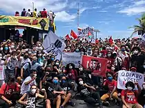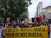 Protests were held on February 5 in several Brazilian cities, including Rio de Janeiro,[3][34][35] São Paulo,[34][35][3] Salvador,[34][35] Brasília,[34][35] São Luís,[34][36] Porto Alegre,[34][35] e Belo Horizonte,[34][35] Recife,[37] Cuiabá,[37] Curitiba,[37] and Palmas.[37] Outside the country, protests were scheduled to occur in New York City and London. Deutsche Welle reported there was a demonstration near the Brazilian embassy in Berlin.[38][39] Besides calling for justice for Kabagambe, the protests denounced racism, xenophobia, and police brutality against Black people in the country.[40] There was also calls for the impeachment of Jair Bolsonaro.[35]
