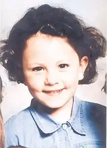 Sophie Louise Hook (27 May 1988 – 30 July 1995) was a seven-year-old British child who was murdered in Llandudno, Wales in the early hours of 30 July 1995. She was from Great Budworth, near Northwich, Cheshire, but was staying at the Llandudno home of her uncle, Danny Jones, when she was murdered.[1] She had gone missing from a tent where she was camping in her uncle's garden, and her body was found washed up on a nearby beach several hours later.[2] Howard Hughes was arrested for the murder soon afterwards, and sentenced to life imprisonment after being found guilty in July 1996.