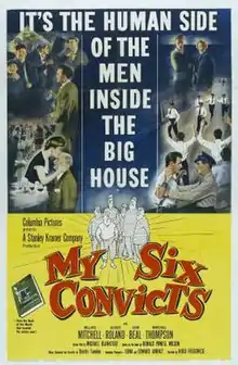 My Six Convicts is a 1952 American film noir crime drama directed by Hugo Fregonese. The screenplay was adapted by Michael Blankfort from the autobiographical book My Six Convicts: A Psychologist's Three Years in Fort Leavenworth, written by Donald Powell Wilson.