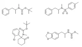 - ↑ Sugie KI, Kurakami D, Akutsu M, Saito K (2018). "Rapid detection of tert-butoxycarbonyl-methamphetamine by direct analysis in real time time-of-flight mass spectrometry". Forensic Toxicology. 36 (2): 261–269. doi:10.1007/s11419-017-0400-y. PMC 6002434. PMID 29963202.