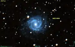 NGC 4444 is an intermediate spiral galaxy in the constellation Centaurus. The morphological classification places it midway on the continuum between a barred spiral (SB) and an unbarred spiral (SA), with an inner region that lies between a ring-like (r) and a purely spiral form (s), and medium- (b) to loosely wound (c) outer spiral arms. This makes it a hybrid ringed, barred spiral galaxy.[6] It has an angular size of 2.4 × 1.6 arcminutes[5] and the estimated mass M is given log M = 9.76, yielding 5.8 billion solar masses.[4]